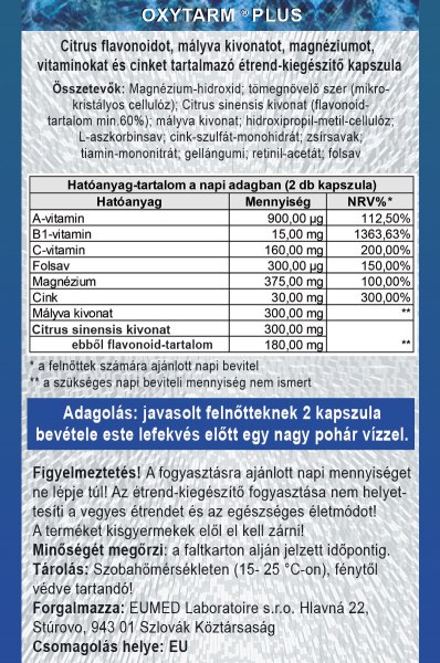 Az újonnan fejlesztett, komplex Oxytarm ® Plus receptúra hatóanyagainak élettani hatásai:
